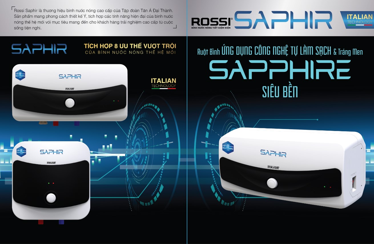Thương hiệu bình nước nóng Rossi Saphir của tập đoàn Tân Á Đại Thành được xem là một sản phẩm cao cấp được thiết kế theo kiểu Ý với kiểu dáng thanh lịch và sang trọng mang lại sự tiện nghi và thoải mái nhất cho người dùng.