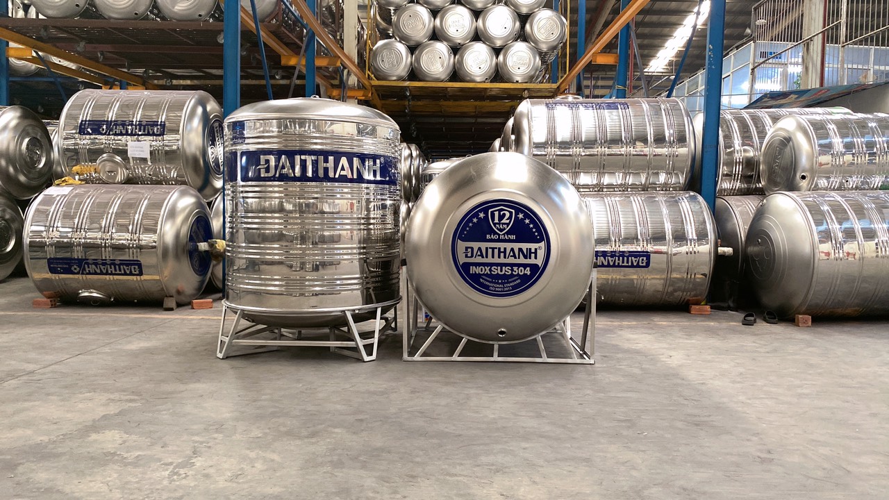 - Phần thân bồn nước đại thành giá rẻ được làm từ vật liệu inox 304 siêu bền được nhập từ Hàn Quốc có công dụng chứa nước,đồng thời đảm bảo vệ sinh an toàn thực phẩm