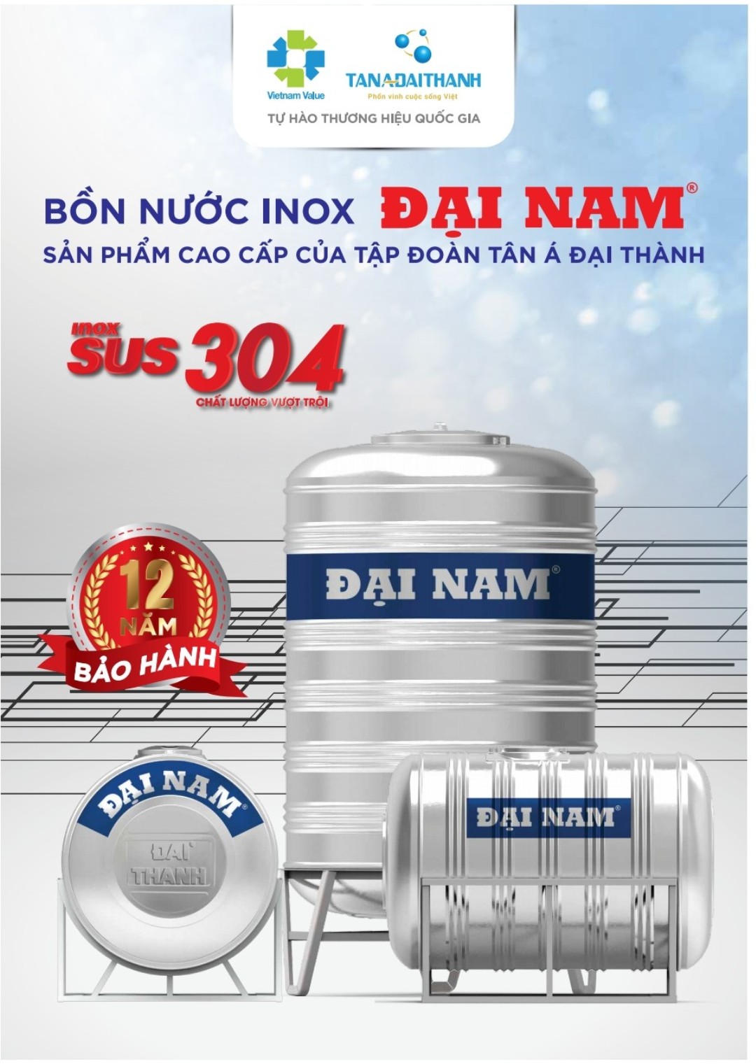 Bồn nước Đại Nam là dòng inox cao cấp thuộc hệ thống Tân Á Đại Thành, nổi bật với công nghệ hàn lăn tự động, nút thông hơi giảm áp lực và loại bỏ khí độc hại như Clo, Flo, cùng bảo hành 12 năm vượt trội hơn 3 năm so với các dòng truyền thống. Dòng này định vị tương đương hoặc cao cấp hơn bồn inox Tân Á/Đại Thành SUS.304 thông thường, nhưng giá cạnh tranh hơn ở một số đại lý nhờ phân phối hệ thống.