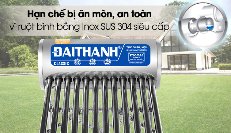 Máy nước nóng năng lượng mặt trời Đại Thành 215L F58 Classic phù hợp sử dụng với tất cả nguồn nước và đặc biệt là nguồn nước ven biển.