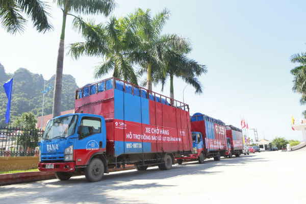 Đoàn xe chở bồn chứa nước nhựa hỗ trợ đồng bào Quảng Ninh